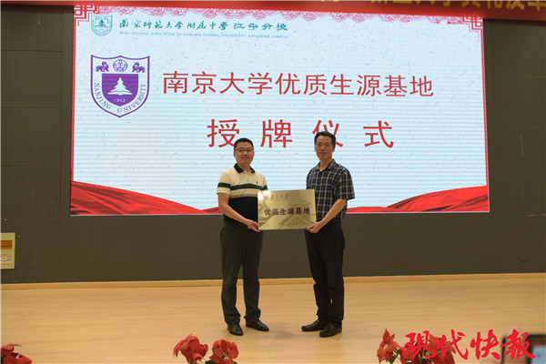 (記者 舒越)8月20日,南京師范大學(xué)附屬中學(xué)江寧分校舉行“夢(mèng)想啟航”2020年高一新生入學(xué)典禮,迎接390多名“萌新”。南京大學(xué)本科招生辦公室主任李浩也來(lái)到現(xiàn)場(chǎng),并向?qū)W校頒發(fā)“南京大學(xué)優(yōu)質(zhì)生源基地”牌匾。