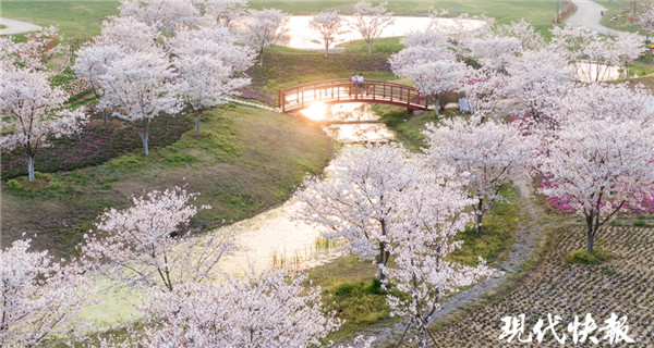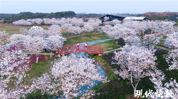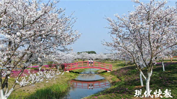 這兩天,鎮(zhèn)江句容白兔鎮(zhèn)伏熱花海里,大片大片的櫻花燦然盛開(kāi),以一樹(shù)的浪漫迎接四方游客。