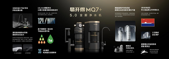 基于對(duì)行業(yè)趨勢(shì)與用戶需求痛點(diǎn)的敏銳洞察,易開得推出MQ7+全廚凈水器,以航母級(jí)凈水科技為全廚凈水生活加碼,不斷推動(dòng)凈水市場(chǎng)向前。