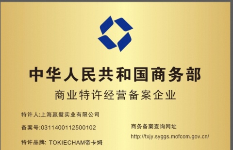 商務部根據(jù)上海贏璧實業(yè)有限公司提交的審核資料,從企業(yè)經營的企業(yè)資質、特許約定和合作要求的合法性;從“帝卡姆”品牌的知名度、美譽度、信譽度和加盟商的忠誠度;從產品、專有技術、物流配送、培訓指導等總部服務能力;以及總部發(fā)展的直營店、加盟店的數(shù)量及經營狀況進行了全面細致的考核,最終認定上海贏璧實業(yè)具備相當完善的特許經營能力,完全符合國家商務部下達的《商業(yè)特許經營管理條例》的要求。