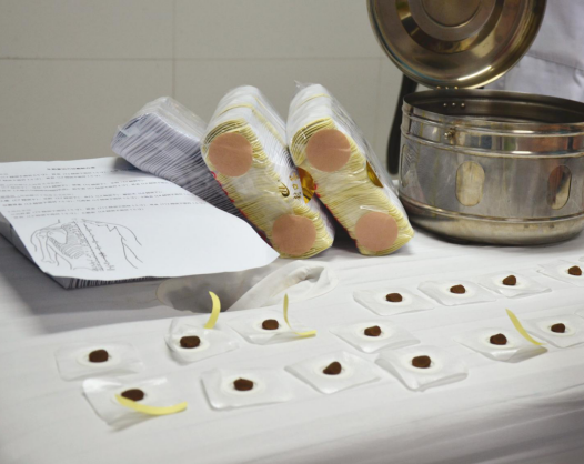 據(jù)兒科主任李蓮嘉介紹,兒童“三伏貼”主要適用于呼吸系統(tǒng)疾病和消化系統(tǒng)疾病。雖然藥物(俗稱“小藥丸”)貼敷的發(fā)散作用更好,但孩子的皮膚嬌弱,而磁療貼相對緩和,所以江寧中醫(yī)院兒科一般是藥物和磁療交替進行,每年也會根據(jù)兒童前一年的貼敷情況對貼敷藥物進行改良,去年醫(yī)院已經(jīng)將貼敷藥物中部分藥物減量,加大了具有調(diào)和作用的蜂蜜,增加了對皮膚的保護作用,同時加入藿香、白芷、炙麻黃等散寒祛濕、止咳平喘的藥物,進一步增強了藥效,從治療情況來看,家長們普遍反映不錯。