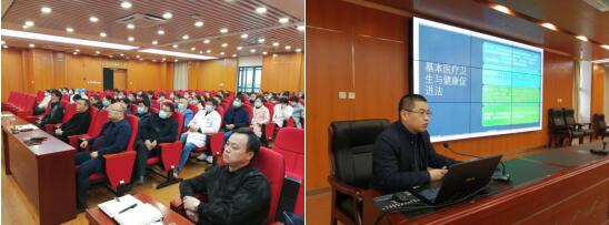為貫徹落實黨的十九大精神,加大全院職工普法力度,穩(wěn)步推進法治醫(yī)院建設(shè),進一步提高醫(yī)務(wù)人員的醫(yī)療安全意識,避免醫(yī)療事故、減少醫(yī)療糾紛的發(fā)生,結(jié)合當(dāng)前的醫(yī)療環(huán)境及日常醫(yī)療工作中所暴露出的一些問題,11月26日下午, 一堂深入淺出、生動形象的法制教育講座在南京市江寧區(qū)祿口社區(qū)醫(yī)院門診綜合樓四樓會議室展開,江蘇豐典律師事務(wù)所黃洪根律師受邀進行醫(yī)療安全知識培訓(xùn)講座,全體醫(yī)護人員參與其中。