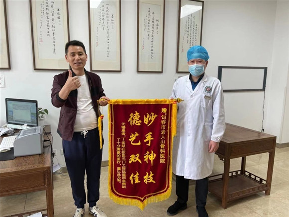家住溧陽的葉先生,2021年6月的一天,在采摘楊梅時不慎跌傷致左大腿腫脹、疼痛,不能站立行走,活動后疼痛加重。經朋友介紹來老人山醫(yī)院治療。7月1日進行了左股骨中下段粉碎性骨折切開復位內固定術,術后恢復情況良好,一周后出院,返回家中靜養(yǎng),現在已完全康復,高興之余,特地讓家人給程保加主治醫(yī)師送來錦旗,上寫:“程氏骨科,名不虛傳!”