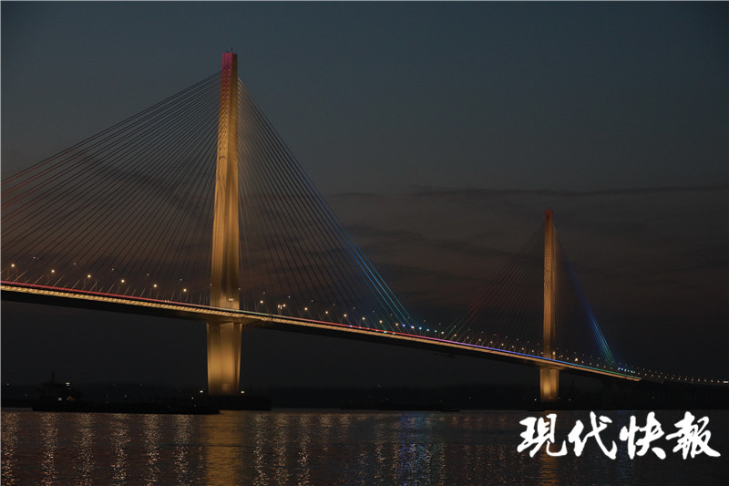 (記者 潘榮 /文 劉暢 /攝)南京江心洲長(zhǎng)江大橋(長(zhǎng)江五橋)開(kāi)通在即!12月22日17點(diǎn),江心洲長(zhǎng)江大橋的燈光準(zhǔn)點(diǎn)亮起,進(jìn)行亮燈調(diào)試,流光溢彩的索塔與橋面交相輝映,如彩色的長(zhǎng)龍橫臥江面,與城市夜景融為一體,曼妙無(wú)比?,F(xiàn)代快報(bào)記者了解到,目前,江心洲長(zhǎng)江大橋的夜景照明工程正式完成調(diào)試。
