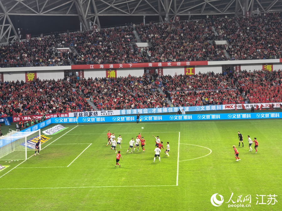 人民網(wǎng)南通10月19日電 (記者王繼亮)19日晚,“蘇超”半決賽第二場打響,南通隊主場對陣無錫隊,經(jīng)過90分鐘激烈角逐,雙方均未能取得進球,比賽進入點球大戰(zhàn)環(huán)節(jié),最終南通隊以4:2戰(zhàn)勝無錫隊。據(jù)悉,11月1日,南通隊將在南京奧體中心體育場,與泰州隊進行“蘇超”冠軍之戰(zhàn)。