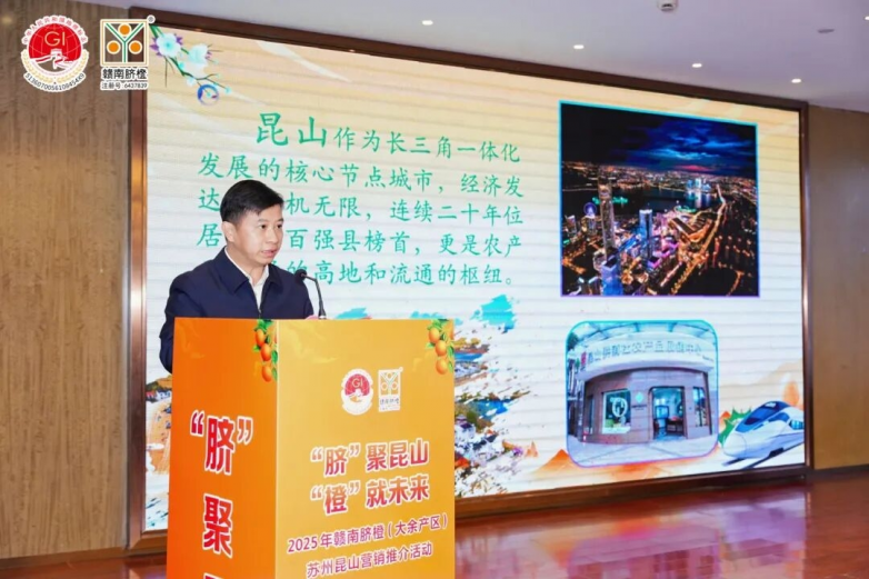 蘇州市政府機(jī)關(guān)殷明在致辭中對(duì)本次推介活動(dòng)的舉辦給予高度肯定,他表示,昆山作為長(zhǎng)三角一體化發(fā)展核心節(jié)點(diǎn)城市與全國(guó)百?gòu)?qiáng)縣榜首,既是農(nóng)產(chǎn)品消費(fèi)高地,也是流通樞紐,大余贛南臍橙的優(yōu)質(zhì)品質(zhì)與昆山的市場(chǎng)優(yōu)勢(shì)高度契合,期待兩地以本次活動(dòng)為契機(jī),深化產(chǎn)業(yè)聯(lián)動(dòng),實(shí)現(xiàn)資源共享。