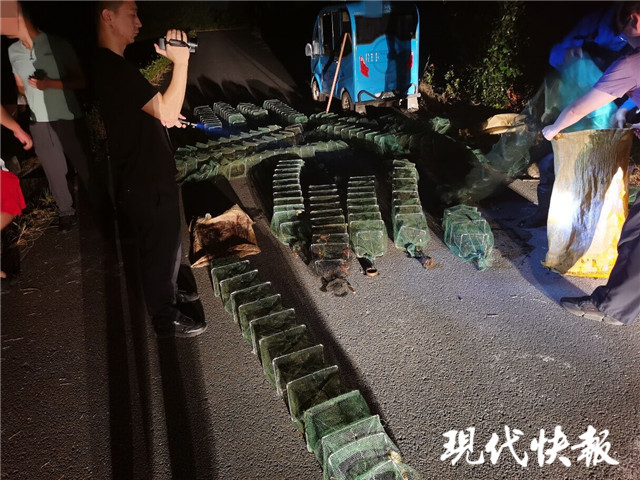 現(xiàn)代快報記者從常州龍虎塘派出所了解到,9月4日凌晨,派出所民警接線索舉報稱,禁漁期間,有人在新北區(qū)錄安洲江邊使用“地龍”等禁用工具捕魚。民警接報后立即駕車前往江邊,將嫌疑人王某當(dāng)場抓獲。