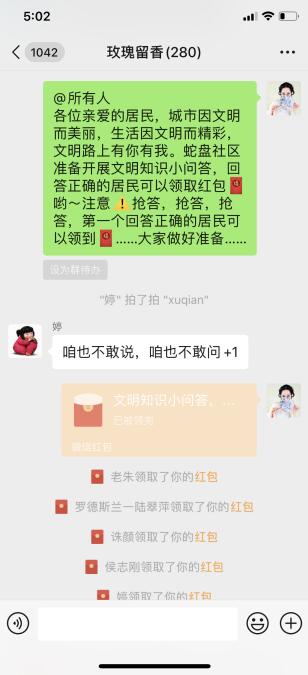文明知識小問答采用線上搶答的方式進行,題目結(jié)合社區(qū)的實際情況設(shè)置,居民答后對身邊的一些不文明行為有了更多的認(rèn)識。貼近居民群眾生活的宣傳,受到了居民的歡迎。居民表示,這樣的形式很好,希望以后再開展這樣的知識普及活動。