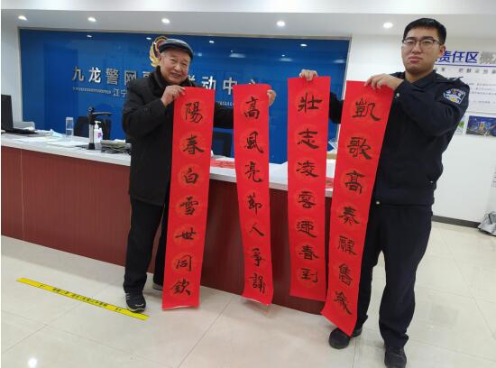 疫情還在發(fā)展,形勢(shì)仍然嚴(yán)峻,在生死時(shí)速的生命通道上有一群無(wú)懼逆行的勇士用行動(dòng)不斷前行。也有一束暖陽(yáng)溫暖著逆行者。帶著“沉甸甸”的春聯(lián)和福字,志愿者與一線服務(wù)站點(diǎn)人員親切交流,了解疫情排查、上崗保障等情況,對(duì)投身疫情防控第一線的職工們表達(dá)了敬意,叮囑他們?cè)趫?jiān)守崗位的同時(shí),要做好自身防護(hù),再接再厲,堅(jiān)決打贏疫情防控阻擊戰(zhàn)殲滅戰(zhàn)。一幅幅寓意吉祥的春聯(lián),一張張喜氣洋洋的大“福”字、“壽”字,免費(fèi)分發(fā)到一線服務(wù)站點(diǎn)人員手中,把美好的節(jié)日祝福送給大家,讓每個(gè)人提前感受到了濃濃的年味兒,溫暖一線服務(wù)站點(diǎn)人員心窩里。