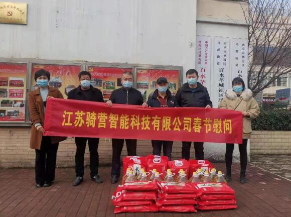 臨近年關(guān),愛心企業(yè)南京騎營(yíng)智能科技有限公司聯(lián)合馬群物業(yè)公司于2021年1月27日上午,向南京市棲霞區(qū)馬群街道百水芊城社區(qū)捐贈(zèng)了一批大米、食用油等生活物資,向幫助轄區(qū)部分困難家庭送去春節(jié)的問候。