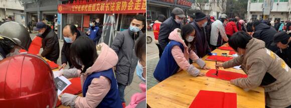 活動(dòng)現(xiàn)場(chǎng),墨香四溢,書法家們揮毫潑墨,一幅幅喜慶的春聯(lián),一句句真誠的祝福,為社區(qū)居民送上牛年新春的第一份美好的祝福。與此同時(shí),網(wǎng)格員在現(xiàn)場(chǎng)耐心疏導(dǎo),悉心提醒,讓居民們戴好口罩,做好個(gè)人防護(hù),倡導(dǎo)大家不僅要把春節(jié)過得熱鬧非凡,還要平安健康。居民們也十分配合,有序排隊(duì),依次領(lǐng)取春聯(lián)和“福”字,把美好的祝愿帶回家。