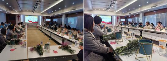隨后,社區(qū)聯(lián)合南京光大環(huán)保集團(tuán),社企聯(lián)合舉辦插花活動(dòng)。參加人員是社區(qū)黨員和巾幗志愿者?;顒?dòng)現(xiàn)場(chǎng),插花老師從選花、裁剪、顏色搭配、造型等多方面講解插花技巧。隨后在老師的指導(dǎo)下,大家將原本普通的各種花材,修剪、整枝,再根據(jù)不同的色彩、形狀做精心搭配。很快,一籃籃精美的插花作品呈現(xiàn)出來(lái)。居民韋阿姨笑著說(shuō):“今年的三八節(jié)學(xué)到了插花技能,還能帶著賞心悅目的鮮花作品回家,真是太開心了!希望社區(qū)以后能多安排這樣的活動(dòng)。”活動(dòng)現(xiàn)場(chǎng)熱鬧非凡,到處彌漫著鮮花的芬芳。