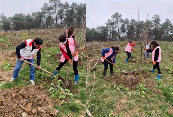 下過幾場(chǎng)雨的土地泥濘濕滑,大家巾幗不讓須眉,紛紛穿上雨鞋、帶上手套,奮力揮起手中的鐵鍬鏟土填土?;顒?dòng)中,巾幗志愿者發(fā)揚(yáng)不怕苦、不怕臟、不怕累的實(shí)干精神,分工協(xié)作,揮鍬鏟土、扶直樹苗、培實(shí)新土,大家配合默契,繁忙有序。“姐妹們,加油呀!”“這顆樹苗馬上就栽好了,我們?cè)偃ハ乱豢谩?rdquo;大家在互相加油打氣中,將一棵棵樹扶正填土、壓實(shí)壓緊!經(jīng)過大家的辛勤勞動(dòng),一株株樹苗穩(wěn)穩(wěn)地扎根在土壤中,為大地增添了一片春天的綠意。