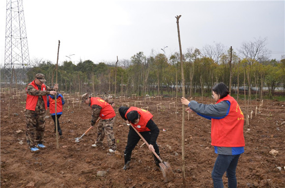 綠色孕育著希望,綠色承載著夢想。新時代文明實踐志愿者們帶著水桶、鋤頭等勞動工具來到山上荒地,大家有的挖坑、有的澆水,有條不紊的將提前準備好的樹苗種下。在植樹期間,志愿者們搬樹入坑、扶正苗木、揮動鐵鍬、填土踏實……各個環(huán)節(jié)銜接有序,分工明確。經(jīng)過近2個小時的奮戰(zhàn),一排排高桿女貞樹整齊劃一地挺立在春風里,使原本空曠的鄉(xiāng)間小路兩側變綠意盎然,生機勃勃。