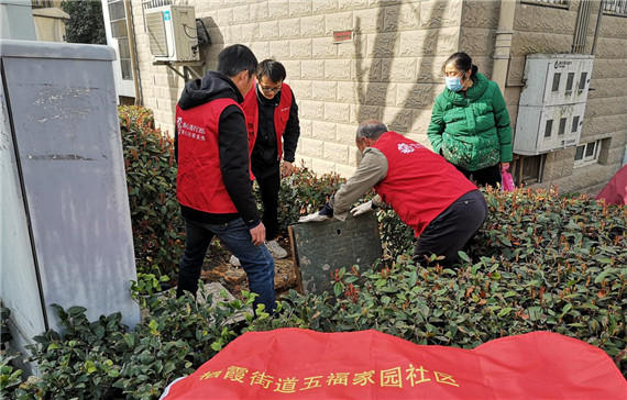 2021年3月2日,南京市棲霞區(qū)棲霞街道五福家園社區(qū)組織城市志愿者在社區(qū)內(nèi)開展安全隱患排查活動(dòng)。