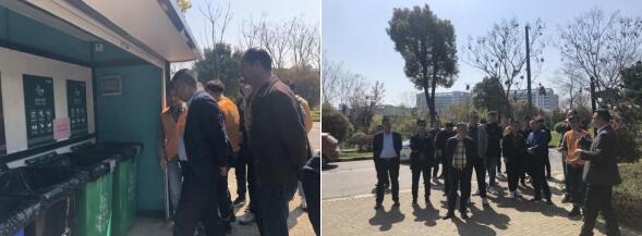 本次現(xiàn)場會議分別在牛首社區(qū)丹佛小鎮(zhèn)、天泰青城、山水華門三個小區(qū)進行。在秣陵街道清管所陶所長、街道物管辦楊主任帶領(lǐng)下,秣陵街道18個社區(qū)垃圾分類負責(zé)人首先來到牛首社區(qū)。社區(qū)組織與會人員參觀學(xué)習(xí)了丹佛小鎮(zhèn)的垃圾分類點,社區(qū)陳主任為大家介紹了小區(qū)垃圾分類的點位,以及社區(qū)在垃圾分類中遇到的問題與解決方法。牛首社區(qū)聯(lián)合物業(yè),結(jié)合小區(qū)原有環(huán)境運行制度,通過線上線下宣傳方式,讓居民知道、理解、認可、接受垃圾分類,小區(qū)內(nèi)及時發(fā)現(xiàn)問題,及時上報,及時解決,讓小區(qū)的垃圾分類工作更加完善、順暢。