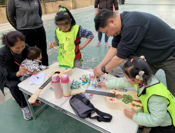 本次手繪尤克里里活動,受到了廣大居民的認可和喜愛。孩子們也在活動中學到了如何勇敢的表達自己的需求,如何跟其他小朋友交往,鍛煉了動手能力和自信心,培養(yǎng)了愛心,增進了親子關系。尤其是組裝琴弦的階段,家長之間互相幫助,給小朋友們樹立了良好的榜樣。