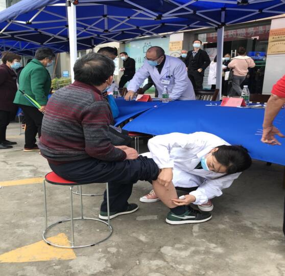 江寧區(qū)首屆“中醫(yī)藥服務(wù)基層行”活動(dòng)在周崗社區(qū)衛(wèi)生服務(wù)中心啟動(dòng)之后,先后在湖熟、土橋、上坊、上峰等社區(qū)衛(wèi)生服務(wù)中心獲得良好反響。3月31日上午8點(diǎn),“基層行”活動(dòng)的第六站設(shè)置在了湯山社區(qū)衛(wèi)生服務(wù)中心院前的廣場(chǎng)上,現(xiàn)場(chǎng)還特別邀請(qǐng)到平日一號(hào)難求的省中醫(yī)院大內(nèi)科兼呼吸科主任周賢梅主任進(jìn)行問(wèn)診咨詢(xún),當(dāng)?shù)匕傩章?tīng)聞后紛至沓來(lái),在活動(dòng)現(xiàn)場(chǎng)拿著CT報(bào)告、化驗(yàn)單早早排起了長(zhǎng)隊(duì)。此外,醫(yī)院黨委還選派副高以上黨員干群30余人組成專(zhuān)家團(tuán)隊(duì),本著醫(yī)聯(lián)共享原則,為當(dāng)?shù)匕傩仗峁┝憔嚯x義診,耐心答疑解惑,讓大家能第一時(shí)間了解自己的身體狀況,在家門(mén)口就能享受到一場(chǎng)優(yōu)質(zhì)高效的醫(yī)療服務(wù)。