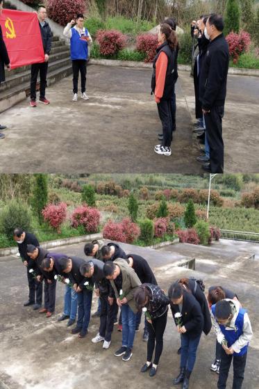 2021年是建黨100周年。青松翠柏間,烈士紀念碑巍然矗立,紀念碑上“革命烈士永垂不朽”八個大字格外醒目。全體黨員在革命烈士碑前整齊列隊,神情肅穆,集體鞠躬默哀,以示悼念。隨后,全體黨員面對紀念碑與鮮紅的黨旗,重溫入黨誓詞,悠遠鏗鏘的詞句表達著對革命先輩的無限追思。