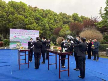 4月3日南京市江寧區(qū)秣陵街道牛首社區(qū)在隱龍山墓園開展了主題為“文明公祭,遙寄哀思”的集體公祭儀式,伴隨著莊重肅穆的音樂聲,公祭祭禮儀式正式開始,首先由工作人員入場,向所有落葬在隱龍山墓園的逝者敬獻花籃,隨后工作人員行三祭禮,以素果、美酒、清香之儀,向所有逝者致以思念之情。