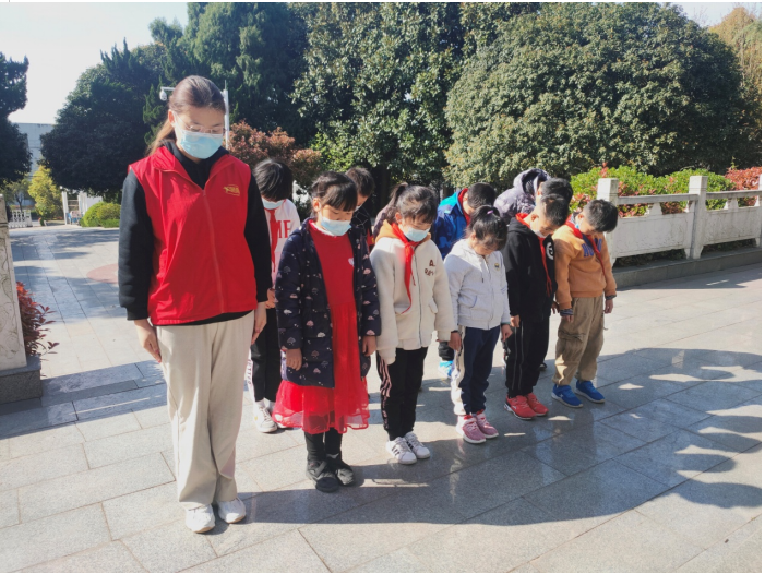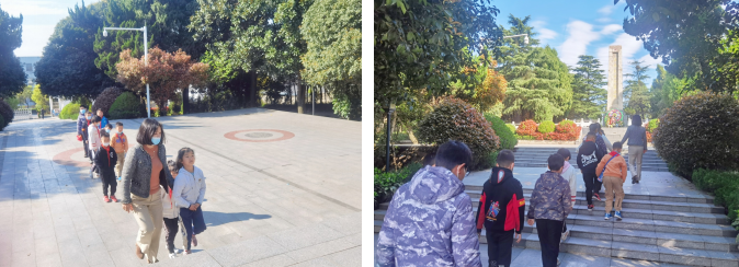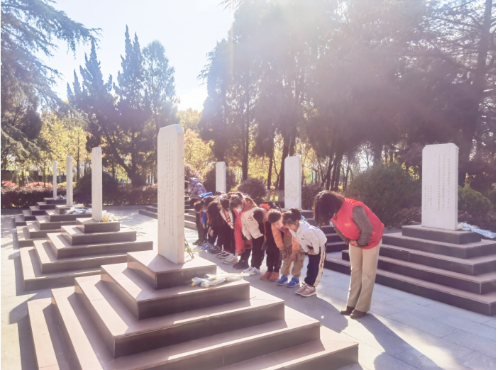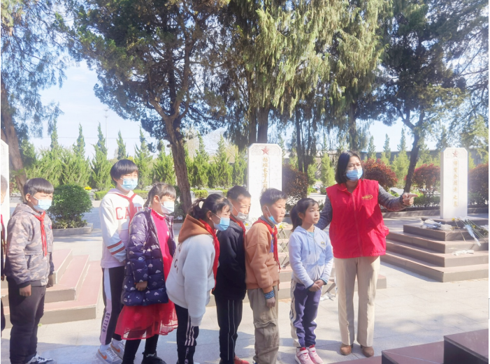 隨后,志愿者帶領孩子們走向革命烈士紀念碑后的烈士墓,并向孩子們依次介紹各位英勇先烈的生平事跡。