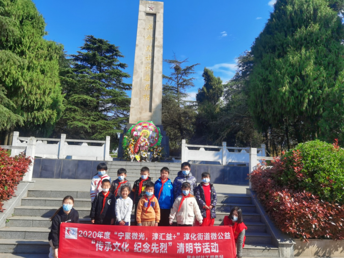 2021年的清明,有別于以往的煙雨綿綿,卻是晴空萬里,微風徐徐。民主村志愿者服務站組織轄區(qū)內(nèi)留守兒童前往土橋烈士陵園學習黨史,祭掃革命先烈。