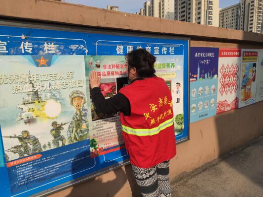 為強化轄區(qū)居民禁毒防毒意識,進一步做好禁毒宣傳工作,近日,南京市棲霞區(qū)燕子磯街道燕子磯社區(qū)組織禁毒社工在各個轄區(qū)張貼禁毒宣傳海報。