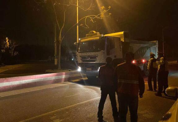 懾于近年來上級(jí)相關(guān)部門一直保持治超高壓態(tài)勢,超載車輛往往選擇夜間活動(dòng),存在諸多安全隱患。東陽社區(qū)相機(jī)而變、主動(dòng)出擊,選擇在社區(qū)和園廣場附近道路蹲守,連夜檢查來往違規(guī)車輛,守護(hù)人身安全和交通安全。
