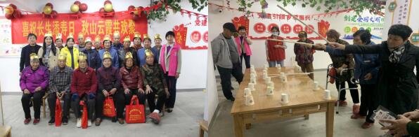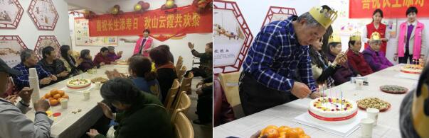 在趣味釣魚游戲的過程中,老人們都自始至終都在為自己的順利過關(guān)而滿足,為同伴成功而歡呼。即使在整個磨合過程結(jié)束之后,大家都很累,可每個人都興高采烈地議論著游戲中的事情,都感到回味無窮。歡樂時刻留在隨后一刻——慶生環(huán)節(jié)!主持人邀請壽星們來到臺上,志愿者為壽星們點上生日蠟燭,現(xiàn)場所有參與者為壽星們齊唱生日歌,切蛋糕。參加生日會的壽星說:“真的很開心,很感謝政府,為老人開展越來越多的活動。”