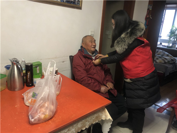 今年88歲的楊德富是一位老復(fù)員軍人,由于老人年紀(jì)較大,平時(shí)社區(qū)黨委就經(jīng)常組織黨員義工走訪以便及時(shí)了解他的身體和生活狀況,每周還協(xié)同居家養(yǎng)老中心工作人員定期上門(mén)探訪,與老人談心、幫老人做一些力所能及的家務(wù),遵循志愿者助人自助的理念,幫助解決老人日常生活中的困難。