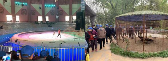 珍珠泉位于南京北部,是以自然景觀為主體,融旅游觀光、休閑娛樂(lè)、度假療養(yǎng)為一體的好去處?;顒?dòng)當(dāng)天,一行人前往南京珍珠泉。剛剛落地就被景區(qū)如詩(shī)如畫的風(fēng)景所吸引,蜿蜒曲折的羊腸小道,波光粼粼的湖面,連綿起伏的山脈,共同繪就了一幅“山水相依生態(tài)美麗”的水墨畫卷。隨后,一行人來(lái)到珍珠泉?jiǎng)游飯@看動(dòng)物,老虎、獅子、鴕鳥(niǎo)、黑熊......各種各樣的動(dòng)物讓老人們看的眼花繚亂。緊隨其后的動(dòng)物表演,更是贏得了老人的一致認(rèn)可??粗实膭?dòng)物表演,現(xiàn)場(chǎng)歡呼聲、叫好聲連綿不絕。