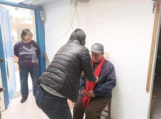 屋內(nèi)暖意融融,熱鬧場面里洋溢著幸福的味道。工作人員和志愿者們先依照慣例幫助王榮國打掃衛(wèi)生,掃地、拖地、擦桌子,大家忙得不亦樂乎。一會(huì)兒功夫,老人家中被志愿者們打掃得干干凈凈。“祝您生日快樂,祝您健康長壽……”打掃衛(wèi)生后,伴隨著溫馨的生日歌,志愿者們?yōu)槔先藥霞t圍巾,奉上生日禮物的同時(shí)為老人用相機(jī)記錄下這美好的瞬間。