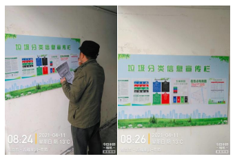 為了鞏固垃圾分類(lèi)成效,提高社區(qū)居民參與垃圾分類(lèi)的積極性,2021年初,棲霞區(qū)棲霞街道五福家園社區(qū)在各樓棟墻內(nèi)設(shè)置了垃圾分類(lèi)宣傳展板,用于展示社區(qū)垃圾分類(lèi)相關(guān)政策,通告每月垃圾垃圾分類(lèi)優(yōu)秀住戶(hù)。