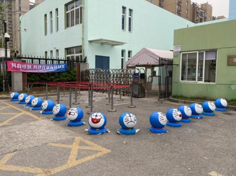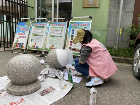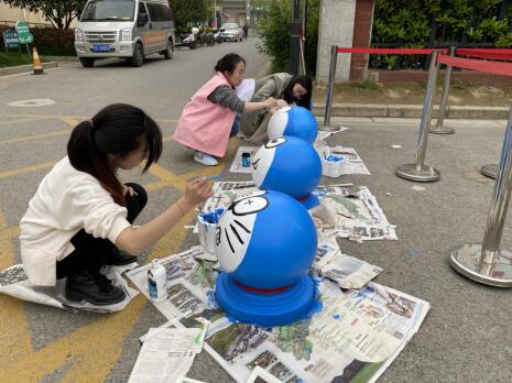 轄區(qū)內(nèi)的九鄉(xiāng)雅苑幼兒園門口共有15個(gè)石球,其功能是阻止車輛穿行,但是水磨石冷冰冰光禿禿的表面有煞風(fēng)景。活動(dòng)前期,社區(qū)婦聯(lián)、社會(huì)組織、幼兒園進(jìn)行了前期溝通,結(jié)合幼兒園自身的特色,多次溝通后選定了多啦A夢(mèng)的彩繪方案。
