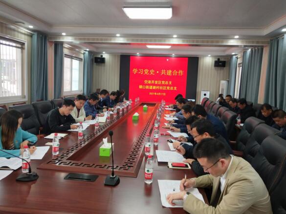 活動(dòng)議程二,雙方黨組織成員來到了謝村社區(qū)黨群服務(wù)中心,開展黨史學(xué)習(xí)教育交流討論,雙方將本支部開展的黨史學(xué)習(xí)教育情況進(jìn)行了分享,并借鑒對(duì)方的工作特色,黨建工作經(jīng)驗(yàn)進(jìn)行交流學(xué)習(xí)。空港開發(fā)區(qū)負(fù)責(zé)人對(duì)我社區(qū)黨史學(xué)習(xí)教育工作表示贊賞,他說,“謝村社區(qū)能通過開展慰問困難居民、給老黨員送學(xué)上門、給群眾健康義診、入戶普法宣傳、新冠疫苗全民接種宣傳等實(shí)踐活動(dòng)真正的把學(xué)黨史與服務(wù)群眾結(jié)合在一起,今后我們要充分利用好支部共建這個(gè)平臺(tái),加強(qiáng)溝通交流,黨建經(jīng)驗(yàn)共享,做到互幫互助,真正實(shí)現(xiàn)“學(xué)黨史、辦實(shí)事”。