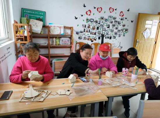 社區(qū)的趙阿姨是居家養(yǎng)服務(wù)站的???,平時沒事兒就會來這里和其他居民聊天喝茶,他告訴社區(qū)工作人員自己年輕時就是靠著幫別人補(bǔ)衣服、補(bǔ)鞋子生活的,做手工當(dāng)然不在話下。活動開始后幾位阿姨就動起手來,從阿姨的眼神中能看出他們的認(rèn)真和仔細(xì),雖然這次活動的材料是木制品,與阿姨們熟練掌握的針線活有所不同,但是大家還是很認(rèn)真地在動手,用一雙雙巧手搭起房子、做出樂器。經(jīng)過一下午的努力,阿姨們把小木屋做的美麗又精致,使簡單的木頭仿佛擁有了生命,變得色彩斑斕,此時的阿姨們也開心的像是孩童一般。