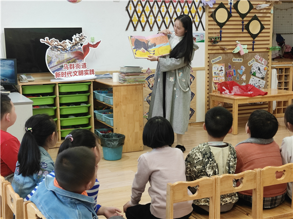 蛇盤(pán)社區(qū)向馬群幼兒園第一分園贈(zèng)送繪本后,工作人員帶領(lǐng)小朋們一起閱讀繪本《十二生肖的故事》,生動(dòng)幽默地講述選拔出十二生肖的過(guò)程,繪聲繪色地講述讓孩子們哈哈大笑,在歡樂(lè)中學(xué)到知識(shí)。工作人員告訴小朋友,回到家以后要小手拉大手,讓爸爸媽媽放下手機(jī),每天都有親子閱讀時(shí)間,讓閱讀成為生活的一部分。