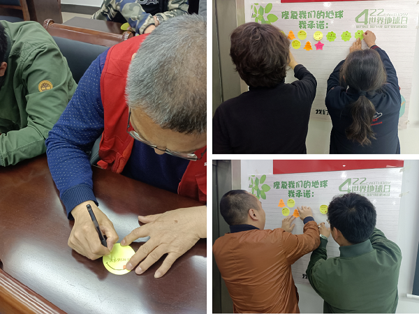 活動中,社區(qū)科普志愿者通過視頻播放和知識講解, 向社區(qū)居民介紹了世界地球日的由來、人類活動對地球環(huán)境和生態(tài)系統(tǒng)的影響及以我們賴以生存的地球的現(xiàn)狀,倡導(dǎo)居民以實(shí)際行動保護(hù)地球資源和自己的生存環(huán)境,并分享了綠色環(huán)保相關(guān)知識,如:使用節(jié)能燈、購物自帶環(huán)保袋、拒絕過度包裝、廢物再利用、垃圾分類投放等。最后,大家莊嚴(yán)地寫下自己的環(huán)保承諾,并一一上臺進(jìn)行了張貼展示。大家表示:“會自覺將承諾轉(zhuǎn)化為實(shí)際行動,從日常生活點(diǎn)滴做起,節(jié)約能源,保護(hù)環(huán)境,減少污染,共同守護(hù)地球母親。