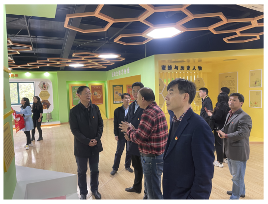隨后,一行人又前往西洋湖養(yǎng)蜂合作社聯(lián)合黨支部參觀蜜蜂科普館,了解到關(guān)于蜜蜂以及蜂蜜釀造過程的科普知識,在參觀交流中學(xué)習(xí)蜜蜂勤勞勇敢、無私奉獻(xiàn)的精神。最后,志愿者為一行人送上了黨史學(xué)習(xí)書籍,并以將革命故事的形式,邀請退伍老兵為一行人講述抗戰(zhàn)英雄張耀華的事跡,讓大家進(jìn)一步了解了耀華社區(qū)命名的由來,深入了解革命烈士們保家衛(wèi)國、守護(hù)人民、敢于犧牲的精神內(nèi)涵。