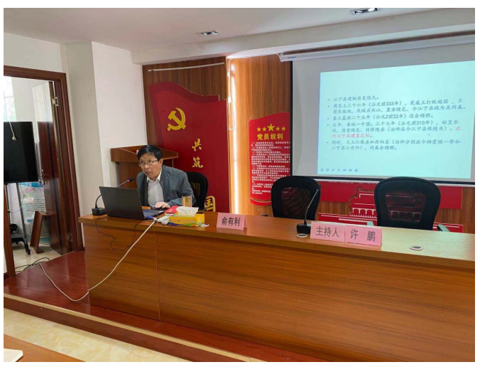 學(xué)習(xí)黨史知識(shí),汲取奮進(jìn)力量?;顒?dòng)中,邀請(qǐng)了區(qū)委黨校俞有利教授以《江寧人民革命斗爭(zhēng)史 》為主題為全體黨員干部帶來(lái)一堂別開(kāi)生面的專(zhuān)題黨課?,F(xiàn)場(chǎng),俞有利教授用珍貴的史料和生動(dòng)的講解,為我們?cè)佻F(xiàn)了中國(guó)共產(chǎn)黨領(lǐng)導(dǎo)下的江寧人民從1937年建立江寧、橫山抗日游擊根據(jù)地到1945年江寧解放革命勝利的艱難歷程。熱情謳歌了革命軍民的英勇壯舉,引導(dǎo)黨員們從中汲取奮勇前進(jìn)的強(qiáng)大力量。