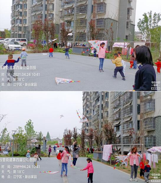 放風(fēng)箏是家長們和小朋友們最開心的時刻,美麗的風(fēng)箏在天上飛著,孩子們歡樂地拍手叫好,廣場上充滿歡聲笑語。