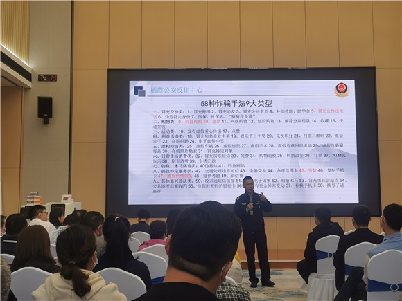 活動(dòng)中,轄區(qū)民警徐瑋圍繞近期發(fā)生在企業(yè)內(nèi)部員工身上的電信網(wǎng)絡(luò)詐騙典型案件,用通俗易懂的語(yǔ)言給園區(qū)企業(yè)講解了什么是電信詐騙、電信詐騙的形式以及如何提升自身的防騙意識(shí);并重點(diǎn)結(jié)合發(fā)生在轄區(qū)內(nèi)的幾起刷單類(lèi)和貸款類(lèi)等詐騙案例,詳細(xì)講解和分析了犯罪分子實(shí)施電信詐騙的特點(diǎn)和手段;教育引導(dǎo)企業(yè)工人面對(duì)電信詐騙時(shí),一定要保持清醒的頭腦,不貪圖小利,不輕信他人謊言,守好自己的錢(qián)袋子。隨后,攝山所所長(zhǎng)王所提醒參會(huì)企業(yè)安全負(fù)責(zé)人,要加強(qiáng)企業(yè)內(nèi)部員工防電詐安全教育并設(shè)立防詐騙專(zhuān)員,召開(kāi)防電詐宣傳部署會(huì),暢通宣傳內(nèi)容到每一個(gè)員工;遇有可疑情況要及時(shí)、多方核實(shí)或撥打96110向公安機(jī)關(guān)尋求幫助。