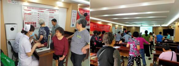 現(xiàn)場,醫(yī)護(hù)人員們用淺顯易懂的語言向轄區(qū)老年人詳細(xì)講解慢性病的概念、分類、誘發(fā)因素等健康教育知識和預(yù)防措施,并開展健康檢查、教學(xué)老年運(yùn)動操,老人們積極參與,在醫(yī)護(hù)人員的指導(dǎo)下,有序排起長隊,認(rèn)真學(xué)習(xí)老年運(yùn)動操的步驟。“我要記牢動作,回家以后也每天就做,做到身強(qiáng)體壯吃嘛嘛香。”在老年運(yùn)動操學(xué)習(xí)現(xiàn)場,一位老人興高采烈地說道。