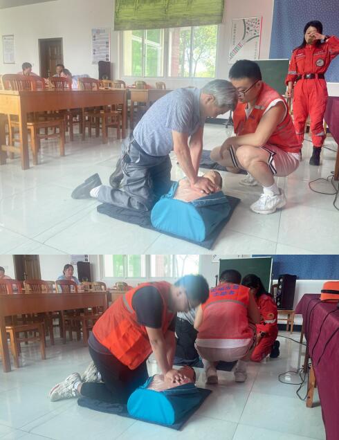 活動現(xiàn)場,南京人防應(yīng)急救援隊徐隊長通過真實案列、近來發(fā)生的大小地震圖片和視頻等。為居民們講解發(fā)生突發(fā)情況的應(yīng)急救護(hù)技巧,地震的起因與危害、震后自救與互救等知識。徐隊長從理論和操作兩個方面對急救理論知識及技術(shù)進(jìn)行了全面科普,讓村民們懂得如何積極應(yīng)對各類災(zāi)害和意外事故,用切實有效的應(yīng)急救護(hù)技能保障自身人身財產(chǎn)安全。