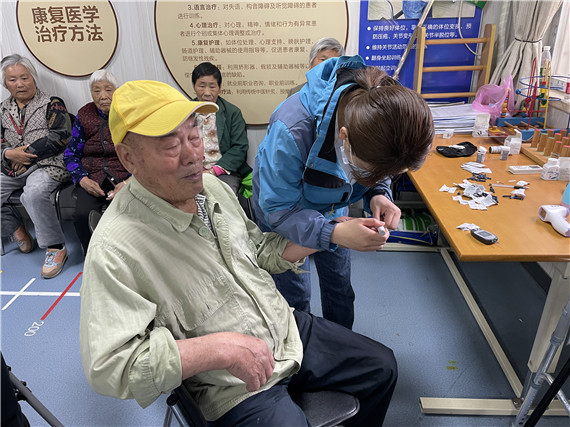 義診活動在有序的進(jìn)行著,工作人員為殘疾朋友監(jiān)測血壓、血糖,并為大家做健康知識宣教,告知他們合理運動,注意飲食,保持良好的生活習(xí)慣,有助于遠(yuǎn)離并發(fā)癥的困擾。接下來為了讓大家更好的了解助疾文化,工作人員播放了一段宣傳小視頻讓大家把注意力聚焦起來,看完小視頻,一些叔叔阿姨帶著自己的疑惑提出了問題:“我怎么沒有看到過這些助殘方式呢?”“在我們生活中大家都有聽說或者親身體驗過的,可能今天我跟大家講的更專業(yè)化一些。比如:家庭醫(yī)生上門服務(wù)、殘疾人之家的日間托養(yǎng)、以及你們經(jīng)常來做康復(fù)等等都是的呀”。聽完之后眾人夸贊在習(xí)近平總書記的領(lǐng)導(dǎo)下生活越來越好了,幸福指數(shù)越來越高,感謝政府領(lǐng)導(dǎo)對殘疾人們的關(guān)心。