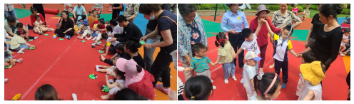 活動中,志愿者根據(jù)參加活動的小朋友們的年齡特點(diǎn)準(zhǔn)備了熱身游戲《if you ‘re happy》《follow me》、運(yùn)動環(huán)節(jié)《永動環(huán)》《圈圈連跳》、奧爾夫音樂《幼兒七步進(jìn)階》、手工《蘑菇地》等親子運(yùn)動,讓孩子與家長在游戲中享受親子時光、鍛煉自己的思維和肢體協(xié)調(diào)能力,增強(qiáng)自己的動手制作能力。