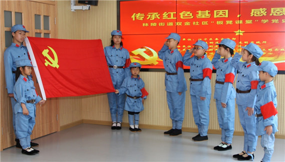 “紅星閃閃放光彩,紅星燦燦暖胸懷,紅星是咱工農(nóng)的心,黨的光輝照萬代……”一首清脆而嘹亮的童聲歌曲響徹在社區(qū)課堂,久久回蕩,催人奮進。