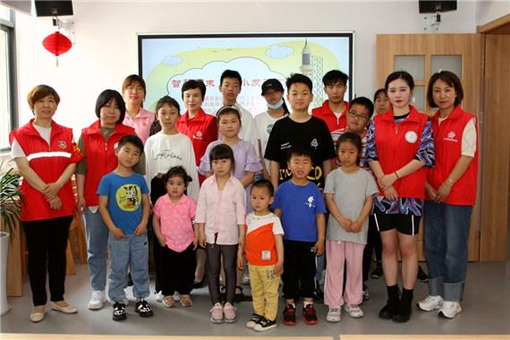 參加社區(qū)服務(wù)中心紅色基因文化活動的志愿者和小娃娃大合影