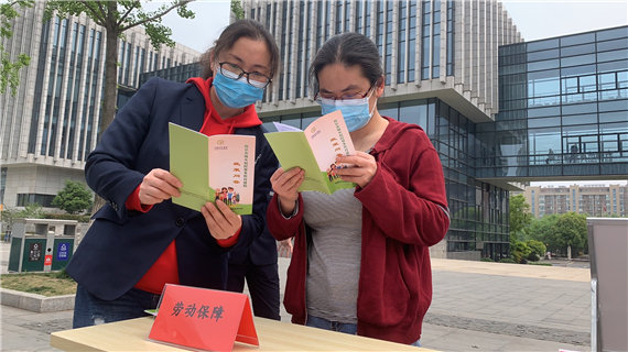 現(xiàn)場(chǎng)秧歌展演的人流量很大,來咨詢專業(yè)問題的居民也絡(luò)繹不絕。“小許,我怎么申請(qǐng)失業(yè)金啊?”“我沒有工作單位,能不能自己繳納社保?”翠林山莊社區(qū)的勞動(dòng)協(xié)理員們一個(gè)接一個(gè)問題詳細(xì)地解答著,勞動(dòng)保障關(guān)系民生福祉,工作人員的貼心解答讓居民與社區(qū)心連心。