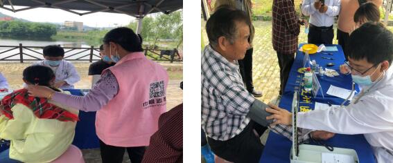 活動(dòng)現(xiàn)場(chǎng),老年人排隊(duì)有序的至登記處,志愿者悉心詢問(wèn)老人們是否吃過(guò)早餐并填寫好個(gè)人信息表格,醫(yī)務(wù)人員詢問(wèn)是否患有心臟病、高血壓、糖尿病、腦梗等隱患疾病,同時(shí)詳細(xì)記錄好個(gè)人信息,為其他醫(yī)務(wù)人員的工作提供便利。第二環(huán)節(jié)是測(cè)量血糖血壓,醫(yī)務(wù)人員根據(jù)上一環(huán)節(jié)的個(gè)人信息進(jìn)行報(bào)號(hào),老人們依次上前會(huì)診,整個(gè)步驟井然有序,醫(yī)務(wù)人員完善信息,轉(zhuǎn)至下一環(huán)節(jié)。